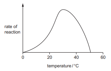 The graph shows the effect of temperature on an enzyme-controlled reaction.
