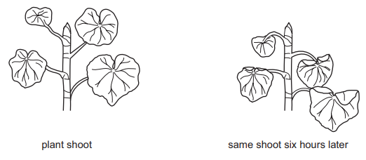 The diagram shows a plant shoot and the same shoot six hours later.