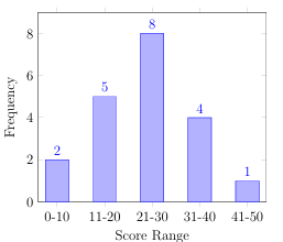 The bar graph shows the distribution of test scores for a class of 20 students: