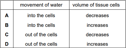 A piece of plant tissue is transferred from a beaker of water into a concentrated sugar solution.