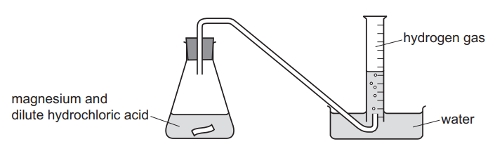 The apparatus used to investigate the rate at which hydrogen gas is given off when a piece of magnesium reacts with dilute hydrochloric acid is shown.