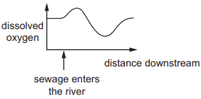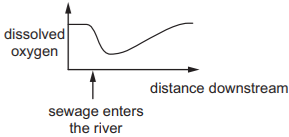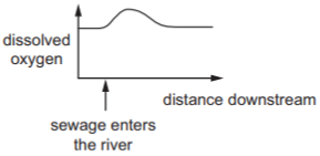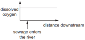 Which graph shows the effect of pollution by untreated sewage on the amount of oxygen dissolved in a river?