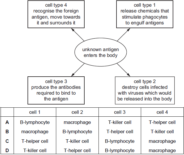 A student used a diagram to show four types of cells involved in the primary immune response.