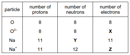 What are the correct values of X, Y and Z?