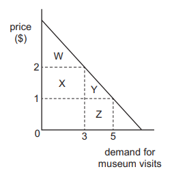 A local government decides to issue a card for residents that gives a 50% reduction on entry prices for visits to local museums. The diagram shows the demand curve for a resident who currently makes 3 museum visits.
