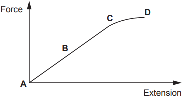 Which letter on the graph shows the elastic limit of the spring being stretched?
