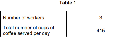 Table 1 contains information about the number of cups of coffee served per day in a cafe.