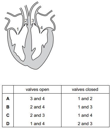 Which valves are open or closed when the atria are relaxed and the ventricles contracted?