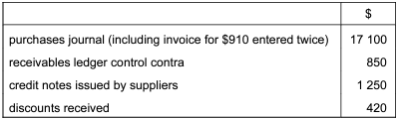 A company’s purchases ledger control account showed an opening balance of $24 640 credit.