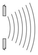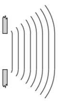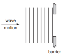 In a ripple tank experiment, plane water-waves meet a straight barrier with a wide gap in it.