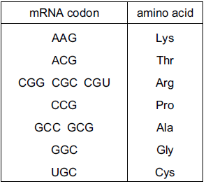 The table shows the amino acids coded for by 10 mRNA codons.