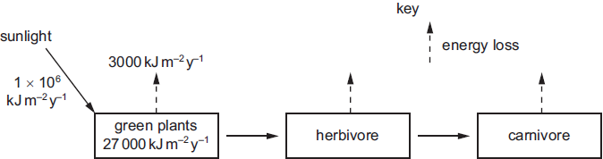 The diagram shows the flow of energy through a food chain.