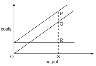 The diagram shows the fixed costs, variable costs and total costs of a firm.