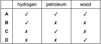 Which of hydrogen, petroleum and wood are fossil fuels?