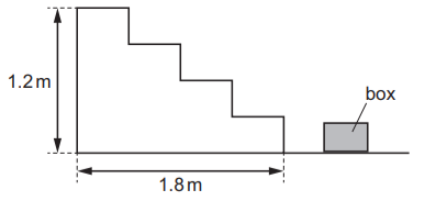 A box of mass 2.0 kg and weight 20 N is carried to the top of some stairs.