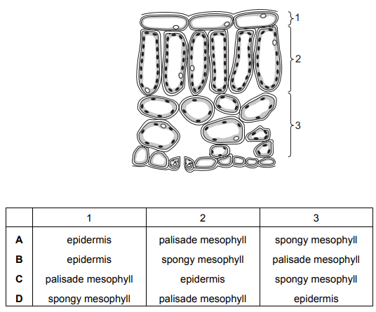 The diagram shows a leaf as seen in cross section under the microscope.