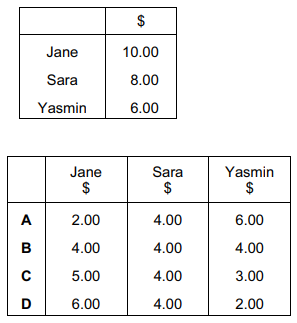 The table shows the maximum amount three students would each be willing to pay for a taxi to take them home from a night club.
