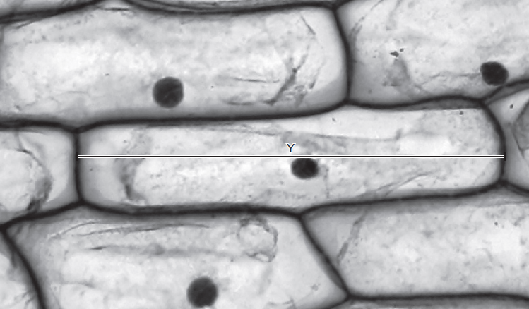 The actual length of the onion cell labelled Y is $350\mu m$.