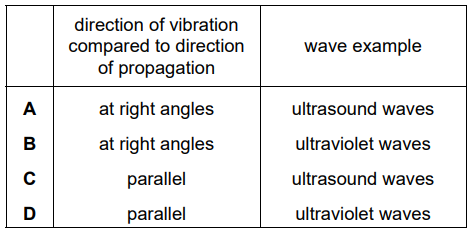 How does the direction of vibration of a longitudinal wave compare to its direction of propagation and which wave example is longitudinal?