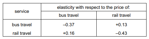 The table gives estimates of the price elasticities and cross elasticities of demand for bus and rail travel.