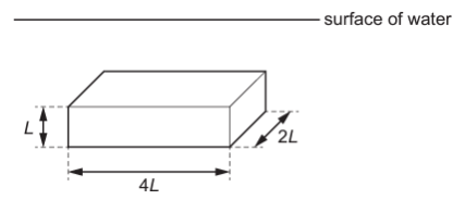 A solid block has sides of length L, 2L and 4L. The block is submerged in water of uniform density so that the faces with the largest area are horizontal, as shown.