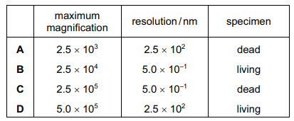 What describes the features of an electron microscope?