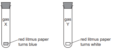 The diagram shows what happens when damp red litmus paper is placed into two different gases, X and Y.