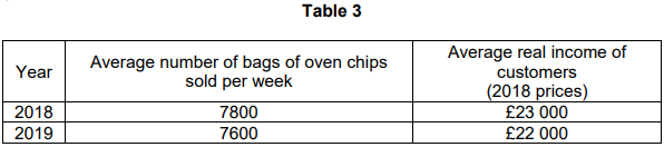 A firm producing frozen foods has collected statistics on recent trends in sales of oven chips, as shown in Table 3.