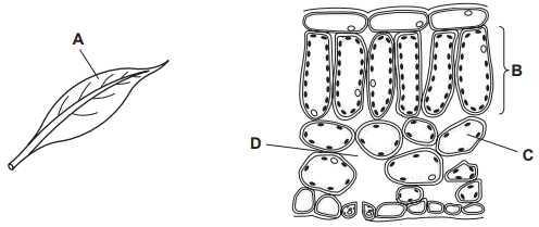 The diagrams show a leaf and a section through part of the same leaf.