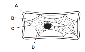 The diagram shows a plant cell which has lost water to its surroundings by osmosis.