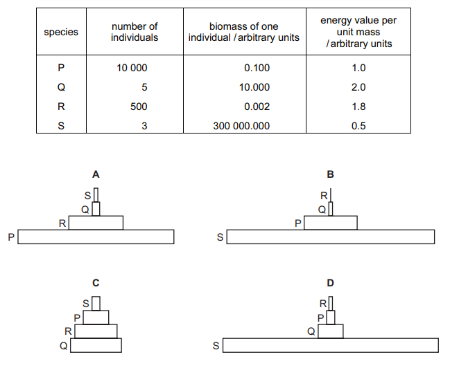 The table shows the results of a field study of four species in a food chain in an area of woodland.