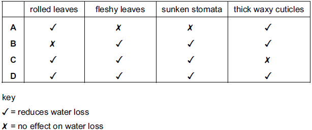 Which features of xerophytes are adaptations to reduce water loss by transpiration?