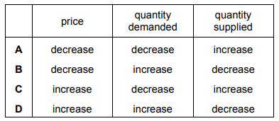 As the market moves towards equilibrium, what will happen to the price, the quantity demanded and the quantity supplied?