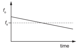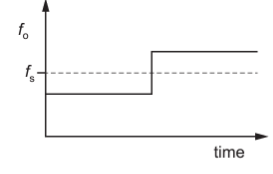 A source emitting sound of a single frequency ${f_s}$ travels at constant speed directly towards an observer. The source then passes the observer and continues to move directly away from the observer. The velocity of the source remains constant.