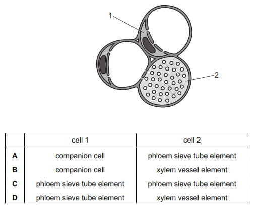 The diagram shows a transverse section through a transport tissue in a plant.