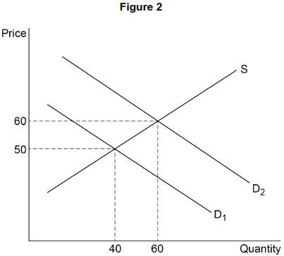 Figure 2 shows the demand (D) and supply (S) curves for diamonds. An increase in demand shifts the demand curve fromD$_1$ to D$_2$.