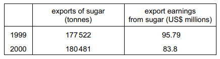 The table refers to exports of sugar from Jamaica in 1999 and 2000.