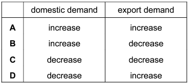 What will be the likely effect on the level of domestic demand for goods and services and on the demand for the country’s exports?
