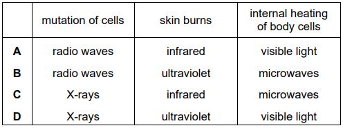 Which regions cause mutation of cells in the body, skin burns and internal heating of body cells?
