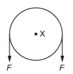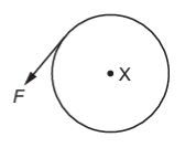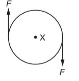 A rigid circular disc of radius r has its centre at X. A number of forces of equal magnitude F act at the edge of the disc. All the forces are in the plane of the disc.