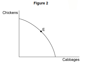 Figure 2 shows the production possibility frontier for an economy producing only two goods: chickens and cabbages.