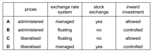 The table shows indicators for four countries undergoing a transition to a market economy.