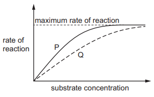 Line P represents the result when the enzyme is used at its optimum pH and optimum temperature and without an inhibitor.