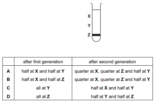 The diagram shows the position of the DNA band at Z in the centrifuge tube when the DNA was first labelled.