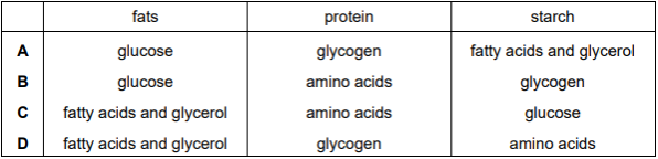 What are the smaller molecules that make up fats, protein and starch?