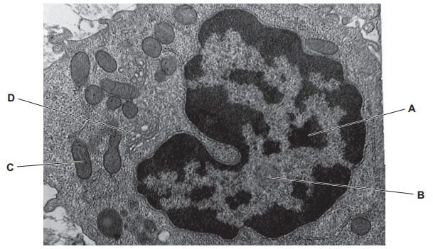 Which cell structure shown in the electronmicrograph is the site of protein modification and packaging?