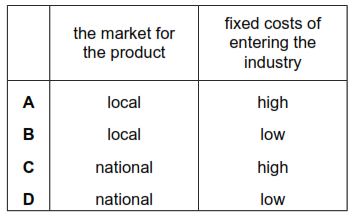 Which conditions are most likely to attract small firms to enter a market?