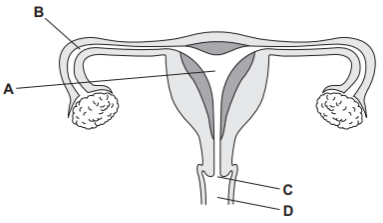 The diagram of the female reproductive system shows where different methods of birth control can be used.