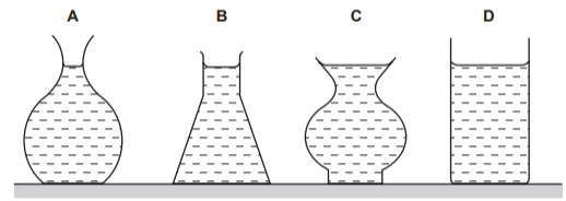 Four flower vases have circular bases. They are filled with water so that they all have the same weight.