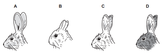 The diagram shows the average head and ear shapes of rabbits from four different regions.